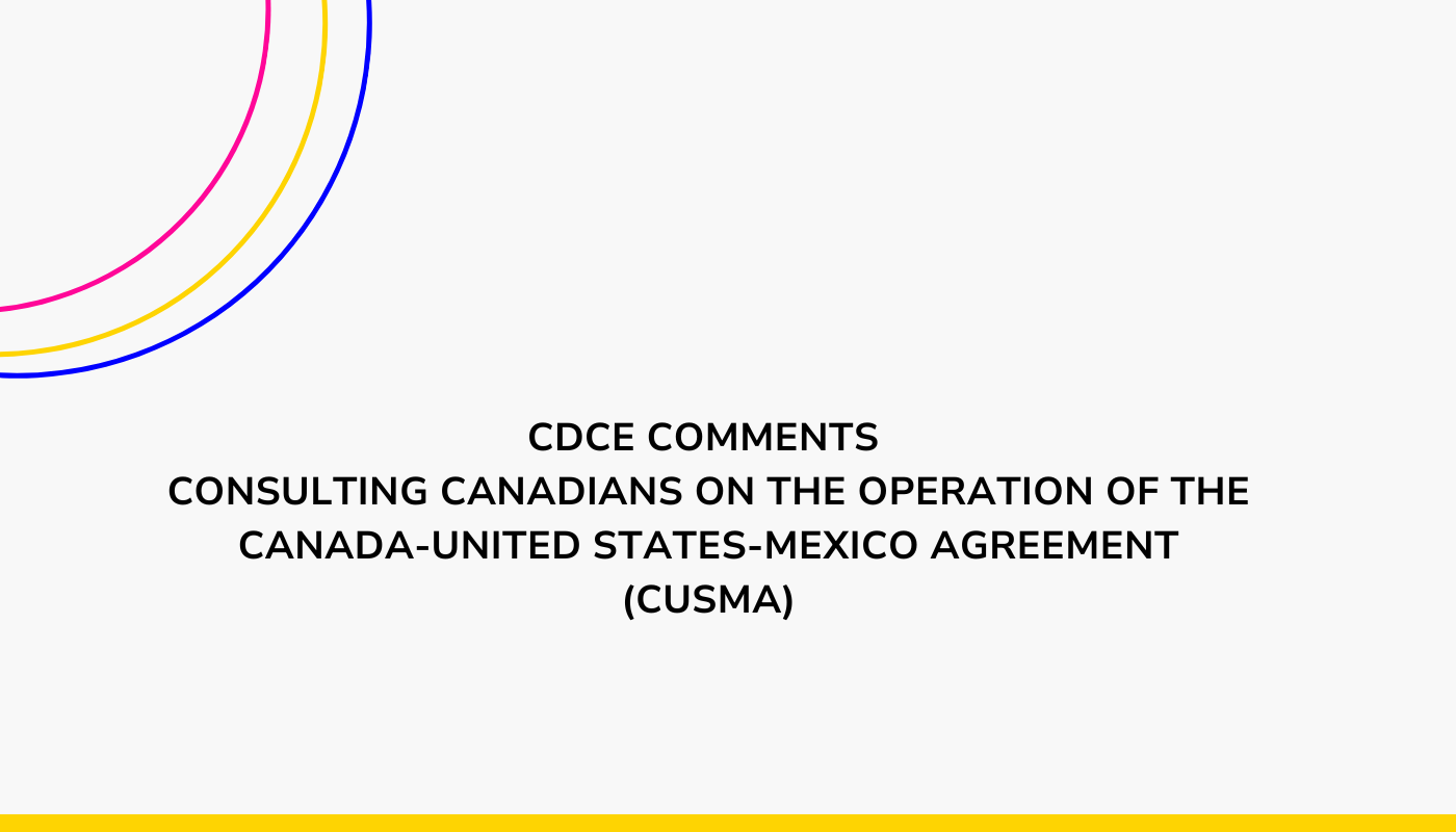 On September 20, 2025, the Government of Canada launched a public consultation on the functioning and current relevance of the Canada–United States–Mexico Agreement (CUSMA), ahead of the first joint review of the Agreement by the parties in 2026. The CDCE thanks Global Affairs Canada for holding this consultation, which enables it to contribute to discussions on the review of the Agreement.